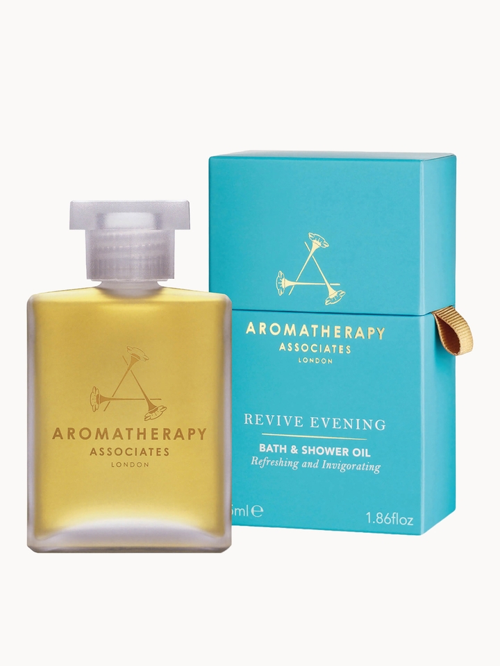 Aromatherapy Associates Revive Evening Bath and Shower Gel Revive your spirits and re-energise. Add 1 capful to full bath or apply to body before showering. Directions for use:Add 1 capful to a full bath or apply directly to body before showering. Approx. 20 capfuls per bottle.Key ingredients:Geranium, Patchouli, Ylang Ylang, Sandalwood, Coconut Oil