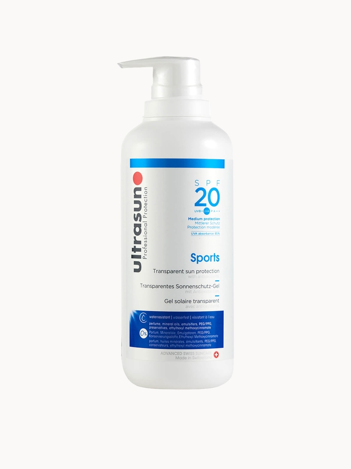 Protect yourself from harmful UV rays with the water resistant Ultrasun 20 SPF Sports Gel, a lightweight, non-greasy gel that is quick and easy to apply. Ideal for active, sport enthusiasts who are always on the go, its fast-absorbing properties give all day defence from the sun. The handy pump bottle offers mess-free application and prevents dispensing too much product at once. E.N.Free from perfume, mineral oils and preservatives.