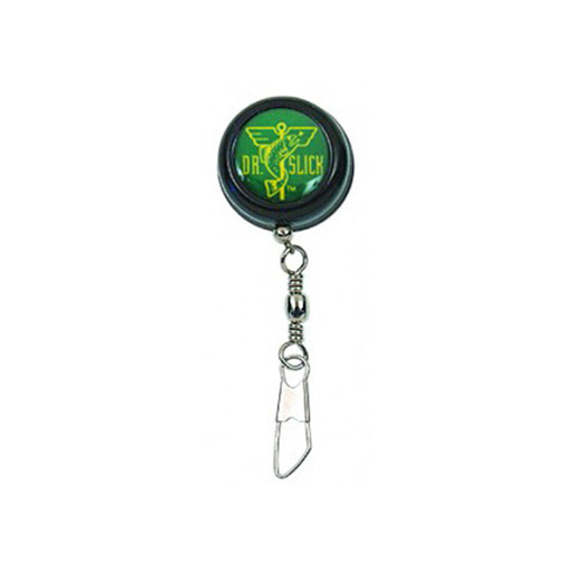 Dr Slick Pin-On-Retractor With Swivel Ring - A must for most anglers vests or packs. These handy retractors keep all your gadgets easily accessible. Features tough steel cords with a 20 inch draw. Has a heavy duty pin. Steel cord retractors are best suited for light accessories, like nippers, files and floatant. Keeps Gadgets Easily Accessible Tough Steel Cord With 20 -Inch DrawHeavy Duty Pin