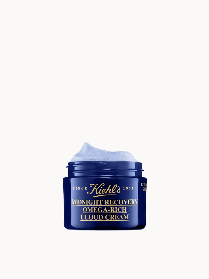 Cocooning skin with a whipped, cloud-like texture, Kiehl’s Midnight Recovery Omega-Rich Cloud Cream delivers plumping hydration, summoning a smooth and radiant appearance as you sleep.The 98.6% naturally-derived night cream is infused with omega 3 and 6 fatty acids and a proprietary blend of botanicals, helping to supports the skin’s natural protective lipid barrier. Seeking to provide visible results in just seven nights, the antioxidant-rich formula transforms complexions from dry and dull to supple and luminous.Suitable for all skin types, including sensitive skin.