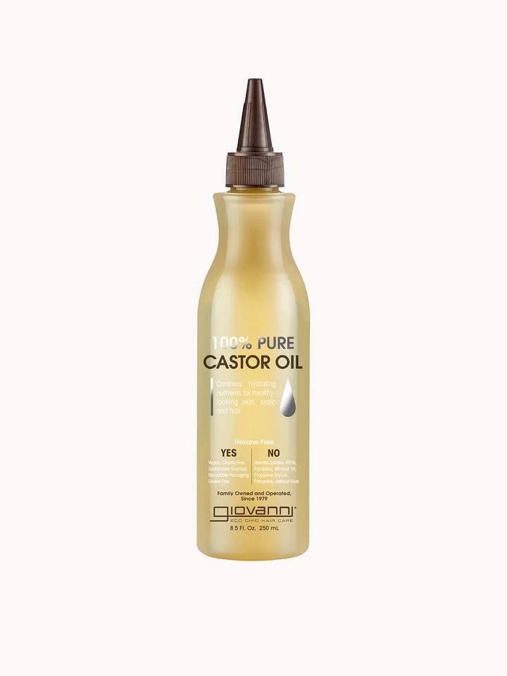 Leaving your hair irresistibly soft, the Giovanni 100% Pure Castor Oil is a nourishing treatment that delivers a replenished and glossy result.The multi-benefit oil helps to combat dry scalps, reduce fly aways and split ends by enveloping the skin and hair fibres in moisture. What’s more, the versatile treatment goes beyond hair care, as it can be added to your favourite beauty products for a boost of hydration.Vegan.