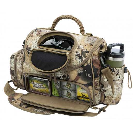 Rig Em Right Lock & Load Blind Bag Optifade Marsh - The Lock & Load Blind Bag GORE OPTIFADE Marsh features separate molded ammo compartment with hard bottom, molded sunglasses case, drink holder pocket, clear internal pockets and a separated main compartment for your essentials. Additionally the narrow profile makes it ideal to fit inside a layout blind and features clips to attach to stubble straps on the outside of your blind if desired. Also, has a metal hook to attach to a nail in the blind or on a hook in the timber. All-in-All, this is the ultimate compact blind bag. Features separate molded ammo compartment with hard bottomMolded sunglasses caseDrink holder pocketClear internal pockets Separated main compartment for your essentialsNarrow profileHas a metal hook to attach to a nail