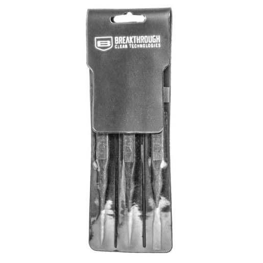 Breakthrough Double Ended Polymer Picks - 3 Pack - Our durable, fiber reinforced polymer picks are designed to safely clean all types of firearm surfaces that can be damaged by the use of metallic weapon cleaning tools. Stronger and more break resistant than any other picks on the market, these tools can easily scrape away carbon from hard to reach areas. Fine tipped double-ended tool for cleaning carbon build up from grooved areas. Tool includes a 45-degree angled fine point tool for getting into hard to access areas of chamber Fine tipped double-ended tool for cleaning tight channels. Tool includes hooked tip for pulling cleaning cloths through areas that are hard to reach Double-ended tool for cleaning carbon build up on bolt carrier group and sliding guide slot corners that are hard to access