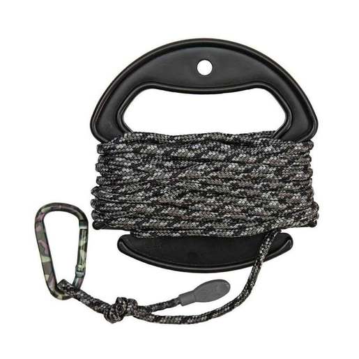 Hawk Braided Hoist Rope 4MM - 25ft - A must-have accessory. The 25-foot length of 4mm Diamond Camo braided poly rope includes a handy storage handle that allows for tangle-free use and includes an Alum-Tech carabiner for quick, secure attachment of gear. 25FT LENGTH 50 LBS CAPACITY ALUM-TECH CARABINER Quick Gear Attachment TANGLE-FREE USE Convenient Storage Handle