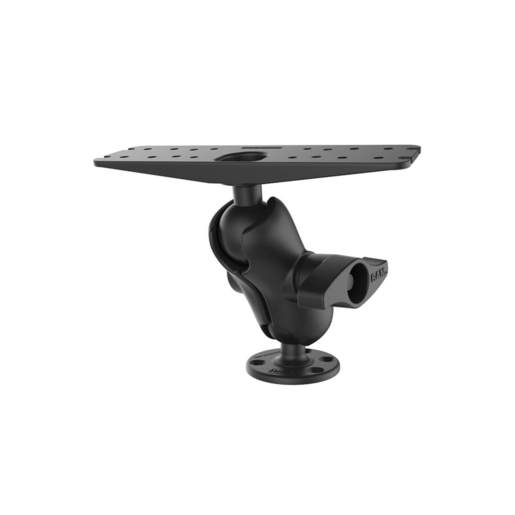 Ram Mounts Large Marine Electronics Mount - 11in x 3in Plate The Ram Mounts Large Marine Electronics Mount is a complete flat surface, drill-down mounting solution for large marine electronics with an overall height of 8.125in. Ram Mounts ball and socket technology allows for near-infinite adjustability. These mounts are made of power-coated, marine-grade aluminum for durability and reliability in the most demanding marine environments and are backed by a lifetime warranty. The Ram Mounts Large Marine Electronics Mount consists of a short double socket arm, 3.68" diameter round base, and 11" x 3" rectangle base. The round base includes a 2.25" D size rubber ball and contains pre-drilled holes, including the universal AMPS hole pattern. The rectangle base also includes a 2.25" D size rubber ball and contains a variety of pre-drilled holes that are compatible with several large marine electronic devices, including fishfinders and chartplotters. *The 11in x 3in rectangle base is a universal mounting bracket with a selection of mounting hole locations. In certain applications additional holes may need to be drilled for proper fit with your electronic device. Hardware included: (4) .312in x .187in shoulder washers Overall Length: 8.125in Top Plate: 3in x 11in Bottom Plate: 3.68in Diameter Ball Diameter: D (2.25in) Materials: Marine-grade Aluminum