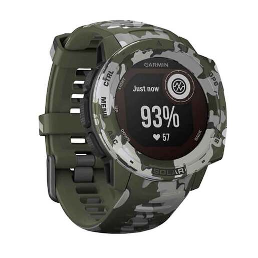 Garmin Instinct Solar GPS Watch - Instinct is a GPS smartwatch built to break convention, conquer the elements and endure longer. It's now taking battery life to a new level by harnessing the power of the sun. U.S. military standard 810 for thermal, shock and water resistance rated up to 100 meters GPS, GLONASS and Galileo Train smarter with built-in sports apps Get notifications straight from your phone to your wrist Do more, charge less with up to 54 days in smartwatch mode Fiber-reinforced polymer case Chemically strengthened, scratch-resistant Corning® Gorilla® glass Wrist based heart rate even underwater Pulse Ox sensor uses light beams at your wrist to gauge how well your body is absorbing oxygen Stress tracking used to calculate your stress level score Body battery energy monitor uses your heart rate variability, stress, sleep and other data to gauge when you're ready to be active or when you may need to rest Navigate your next trail with ABC sensors including altimeter for elevation data, barometer to monitor weather and three-axis electronic compass Trackback routing feature to navigate the same route back to your starting point Memory: 16 MB Weight: 53g Silicone Strap, Fiber reinforced Polymer case Display resolution: 128 x 128 pixels Size: 45 x 45 x 15.3 mm Fits wrists with a circumference of 132-224 mm Includes the charging/data cable and documentation