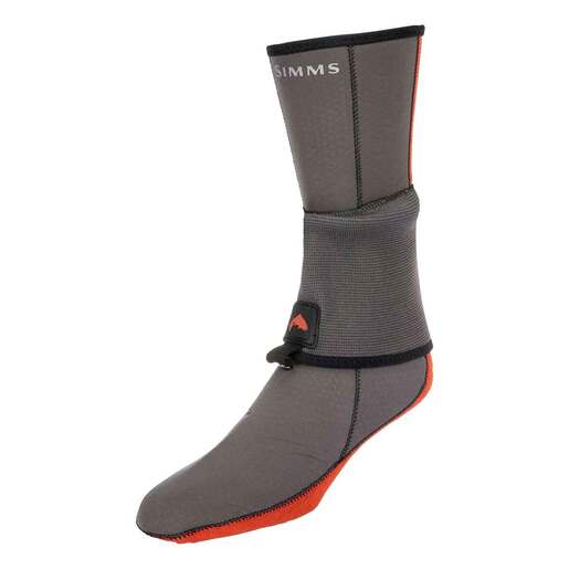Simms Men's Neoprene Flyweight Wading Socks - Technical wet-wading socks for use with Simms Flyweight Wet Wading Shoes. Built-in gravel guard sheds water, gravel and muck Silicone print grip inside gravel guard to help keep it in place Reinforced lace hook keeps guard from lifting in strong currents Mid-calf height Machine wash and dry Sizes: S (7-8), M (8-10), L (10-12), XL (12-13), XXL (13-14) Style: PG-13150