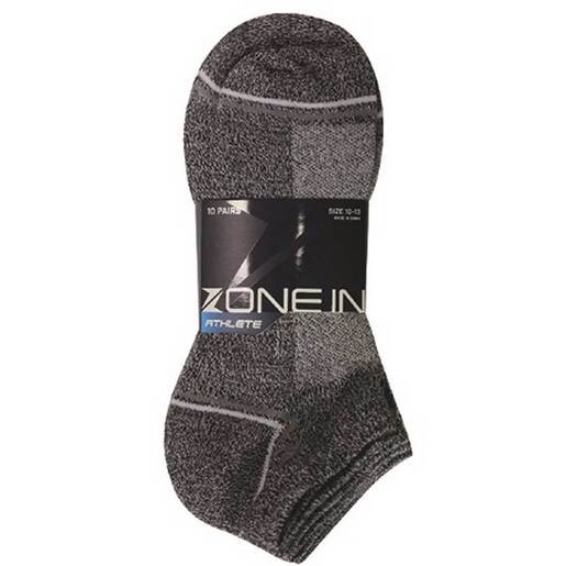 Zone In Men's Athletic Casual 10 Pack Ankle Socks - Designed for comfort on whatever path you choose. These take your sock game to the next level by being light and breathable, but still giving you arch support. Low Cut 10 Pack (Black/White option contains 5 pairs of black and 5 pairs of white) Fits Sizes 10-13 Style: 19862