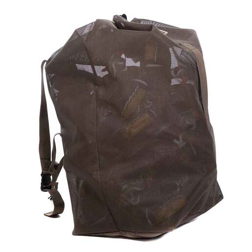 Higdon Outdoors Small Decoy Mesh Bag - 3 Dozen Capacity - This backpack style bag is ideal to help carry your decoys. Made of a durable PVC coated mesh, this keeps it lightweight and helps to drain water that gets inside. Hold up to 3 dozen standard decoys. PVC coated mesh is durable, lightweight and drains water easily. Backpack style straps keep your hands free while carrying Two regular carry straps for versatility Easy to use, non-slip drawstring closure. Holds up to 36 standard size decoys Deployed size: 39in x 18in x 15in