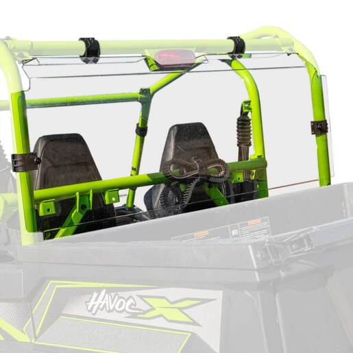 Kolpin UTV Windshield - Rear Panel - Havoc / Stampede - UTV / SxS Rear Panel for Havoc and Stampede models. Provides barrier to keep debris from swirling into the cab of your UTV or SxS. General Purpose poly-carbonate (does not have scratch resistant finish) Easy to install - NO drilling required Extremely durable - injection molded c-clamps