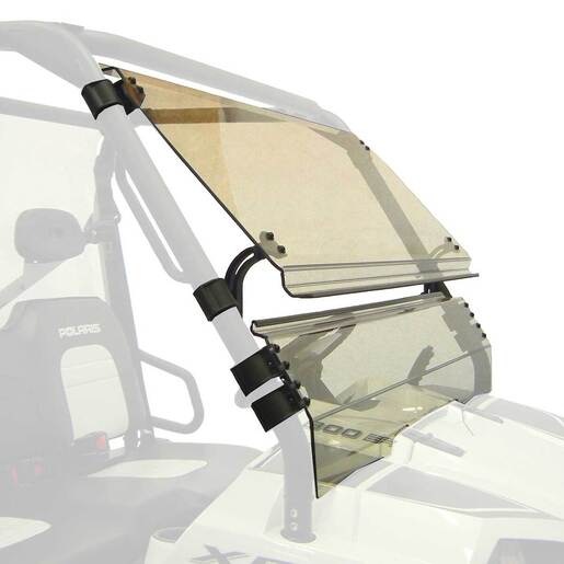 Kolpin UTV Windshield - Full-Tilt - Polaris Ranger 570 / 800 - Full-tilting UTV/SxS windshield with versatile three-position tilt mechanism. Fits Polaris Ranger XP, Ranger LE, Ranger Crew from 2010-current. Easy installation. Versatile three-position tilt mechanism permits airflow into the driver compartment if desired Opens 3in or 5-1/2in 1/4in abrasive-resistant poly-carbonate with Scratch Resistant finish Easy to install - NO drilling required. Removable without tools. Extremely durable - injection molded c-clamps Open positions are designed for low-speed riding ONLY Trailerable in closed position ONLY