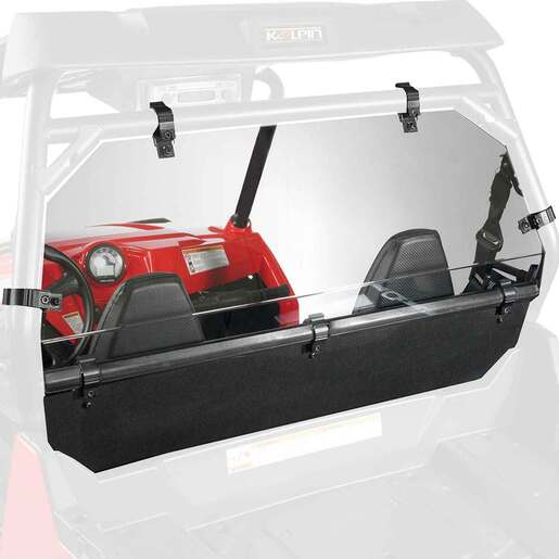 Kolpin UTV Windshield - Rear Panel - Polaris RZR - UTV / SxS Rear Panel for Polaris RZR models. Provides barrier to keep debris from swirling into the cab of your Polaris RZR. General Purpose poly-carbonate (does not have scratch resistant finish) Easy to install - NO drilling required Extremely durable - injection molded c-clamps DOES NOT fit RZR 4 or any 2011 models