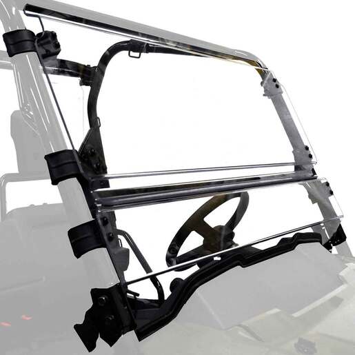 Kolpin UTV Windshield - Full Tilt - Honda Pioneer 700 2-Pass/4-Pass - Full-Tilt Honda Pioneer Windshield. 1/4in abrasive-resistant poly-carbonate with Scratch Resistant finish fits 2014-2019 Honda Pioneer 700 models. Versatile three-position tilt mechanism permits airflow into the driver compartment if desired Opens 3in or 5-1/2in Easy to install - NO drilling required. Removable without tools. Extremely durable - injection molded c-clamps Open positions are designed for low-speed riding ONLY Trailerable in closed position ONLY