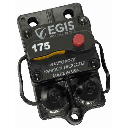 Egis Surface Mount Heavy Duty Circuit Breaker Marine Electronic Accessory - Protects Electrical Circuits from short circuit events and over-current loads, preventing wire insulation overheating and subsequent destruction.Automatic Circuit Protection & Manual On/Off Switching combines dual functionality in one reliable and compact solution. Allows for Circuit Isolation and Maintenance of Load Circuits by providing convenient switching and integral circuit protection capable of mounting adjacent to battery systems regardless of the location. Sealed Against Dust & Water Intrusion to ensure reliable circuit protection for the life of the electrical system installation High Voltage (72 Vdc) Rating: easily supports 12 and 24 Vdc applications while offering advanced protection for 36 and 48 Vdc High Electrical / Manual Switching Endurance delivers 6,000 cycles at full current High Interrupt Current: safely protects circuits connected to large paralleled battery banks with significant available power