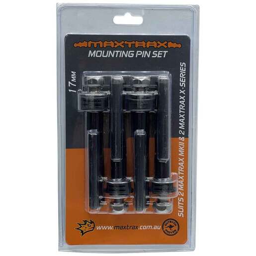 Rhino-Rack Maxtrax Mounting Pin Set - MAXTRAX Black Nylon and stainless steel quick-release mounting pin set for securely mounting your MAXTRAX MKII on a roof rack or bars. The set includes 4 pins which can securely hold 2 or 4 MAXTRAX MKII Recovery Tracks, 4 stainless steel Nyloc nuts and 4 flat stainless steel washers. Features Designed to secure 2 or 4 (1 or 2 pairs) of MAXTRAX MKII 4WD Recovery Tracks. Glass-filled Nylon and stainless steel quick-release pins for securely mounting your MAXTRAX on a roof rack, mount, or crossbars. The set includes 4 pins to securely hold 2 or 4 MAXTRAX MKII 4WD Recovery Tracks, 4 stainless steel Nyloc nuts, and 4 flat stainless steel washers. There's a hole in the top of each mounting pin to fit a small padlock. Designed specifically for MAXTRAX MKII 4WD Recovery Tracks