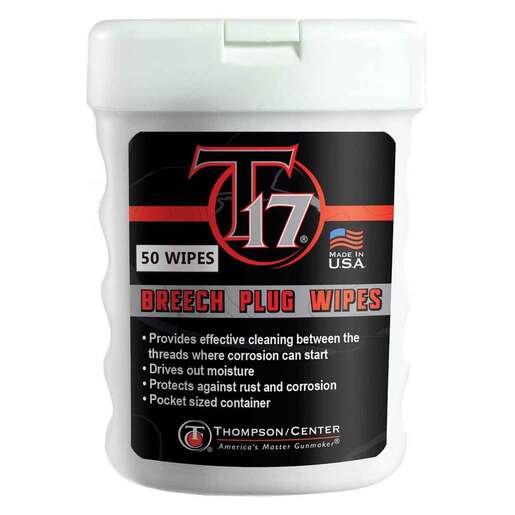 Thompson T17 Breech Plug Wipes - Designed specifically to quickly wipe off caked on fouling and grease from breech plugs. Effectively cleans between the breech plug threads. Works great for traditional black powder and most black powder substitutes.