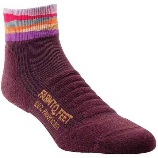 Farm To Feet Max Patch Lightweight Quarter Crew Hiking Socks - Max Patch, located just west of Asheville, NC, is one of the most popular spots on the Appalachian Trail for its 360 degree views. Part of the Farm to Feet Appalachian Trail collection, the Max Patch quarter crew sock features an infinite loop of mountain tops around its ankle, much like the view from the mountain’s grassy summit. The foot of the sock is based off the popular Damascus with targeted cushioning and reinforcement zones for superior comfort and durability, but in a lower height and great ankle-high views. Merino wool is soft, itch-free, naturally odor- and bacteria-resistant, cool in the summer and warm in winter High-density cushion targeting critical performance areas throughout the sock Advanced knitting techniques create a totally flat connection in the toe box, reducing bulk and eliminating blister-generating friction Reinforced construction and low-stress seam placement reduce wear and tear, increasing the life of the sock Just above the ankle 100% U.S. grown merino wool exclusively from sheep raised by American farmers on American farms 59% US Nylon/37% US Merino Wool/4% US LYCRA Spandex Style: 2339
