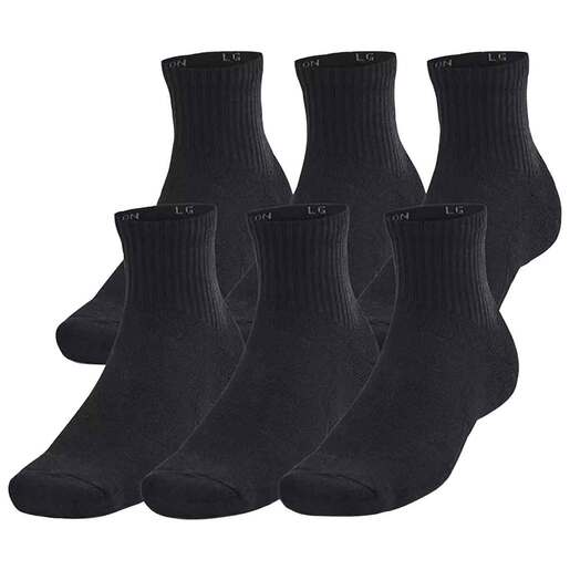 Under Armour Men's Training 6 Pack Micro Crew Socks - Yes, they're cotton-blend socks—but they work harder than any other cotton-blend socks you've worn. These Training Cotton socks from Under Armour wick moisture so your foot feels cooler while still giving you that incredible comfort and cushioning you expect from regular cotton-blend pairs. Mesh panels on top of foot for added breathability Built-in arch support helps reduce foot fatigue Ribbed-knit cuffs and ankles Wicking fabric helps evaporate moisture Quick-dry; locked-in fit helps keep socks securely on heel Medium cushioning helps protects high-impact areas without added bulk Style: 1386318