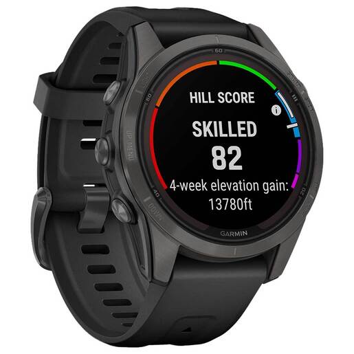 Garmin Fenix 7S Pro GPS Smartwatch - Conquer every hour with advanced training features, 24/7 health and wellness monitoring, and up to more than a month of battery life with the Power Glass solar charging lens and a rugged watch case designed for smaller wrists. Features Get up to 14 days in smartwatch mode with solar charging in 3 hours of direct sunlight (50,000 lux) per day and up to 46 hours in GPS mode with solar charging (assumes continuous use for entire period in 50,000 lux conditions). Variable light intensities and a red safety light give you greater awareness while you train in the dark and can provide convenient illumination when you need it. Strobe mode can even match your running cadence. The ECG app uses sensors to record the electrical signals that control how your heart beats. It analyzes that recording to detect signs of an irregular heart rhythm called atrial fibrillation (AFib). This feature measures your ability to sustain prolonged efforts and combines training data from all your athletic pursuits to help you understand how training impacts your overall endurance. This dynamic measurement uses your VO2 max, short-term/long-term training loads and other factors to gauge your fitness progress beyond just VO2 max. The resilient athletic design features a 1.3in scratch-resistant sapphire solar charged display, responsive touchscreen, traditional buttons and 47 mm fiber-reinforced polymer case with a titanium bezel and rear cover. The watch is tested to U.S. military standards for thermal, shock and water resistance. Your health and training data should be easy to interpret and provide actionable insight. Begin each day with a customizable morning report, and see a daily summary of health and wellness information. Use the training readiness feature — which looks at a variety of different health metrics to help you maximize your training efficiency and recovery — to prevent burnout. Measure your capability for running uphill, and evaluate your progress over time based on your VO2 max and training history. Get an estimate of what your pace could be for a 5K, 10K, half-marathon and marathon. Plan race-day strategy with GPS-based pace guidance for a selected course or distance. See real-time information on your current and upcoming climbs on downloaded courses. Get your equivalent running pace at the same effort on flat ground or when ascending. From the moment you wake up, get a readiness score based on your sleep quality, recovery, training load and more, so you can determine whether it’s a good day to go hard — or take it easy. Get insight, and know whether you’re training productively, peaking or strained. Gauge your performance with advanced training metrics such as VO2 max, training load and more. Prevent burnout, and use this data to track and manage your exertion. View your entire week of daily suggested workouts, which adapt after every run or ride. Know how long you need to recover before your next high-effort workout based on your latest training. Prepare for your next race with training tips, personalized daily suggested workouts and more. See how much power you’re applying to the trail or road so you can manage effort and fine-tune training. Train for an event, achieve a milestone, or improve your fitness with Garmin Coach training plans for runners and cyclists. This feature automatically detects sport changes between swim, bike and run in multisport activities — so you can focus on the race and let your watch take care of recording splits. Use preloaded activity profiles to get data and insight from your active pursuits. You can now track team sport activities such as soccer, football, racquet sports and more. Track your HIIT workouts, including AMRAP, EMOM, Tabata or custom workouts. Follow animated cardio, strength, yoga and Pilates workouts on the watch screen. Automatically track ascents and descents along with how much time you spend between runs. Measure exercise load when paired with an HRM-Pro Plus chest strap (sold separately). Record the number of waves surfed, maximum speed reached, distance traveled and more. Create a video of every wave you ride in front of a Surfline camera with Surfline Sessions technology. Use the Surfline widget to see tide, wave height, wind and surf rating for each of the five nearest surf spots. Track the details of your ride with specialized Grit and Flow measurements. Subscribe to Outdoor Maps+ for premium mapping content, such as satellite imagery and enhanced topographic maps, downloaded directly to your watch. Get superior positioning accuracy with multi-band GPS while optimizing battery life. Navigate your next trail with an altimeter, barometer and 3-axis electronic compass. Preloaded TopoActive maps from around the world keep your explorations on track. View run names and difficulty ratings for more than 2,000 ski resorts worldwide. Get preloaded full-color CourseView maps for more tha