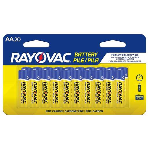 Rayovac AA Zinc Carbon Batteries - 20 Pack - Rayovac Zinc Carbon AA Batteries are the solution for low-drain or seldom-used devices like smoke detectors, radios, clocks, remote controls, and flashlights. Features Zinc Chloride formula Best used before date on battery