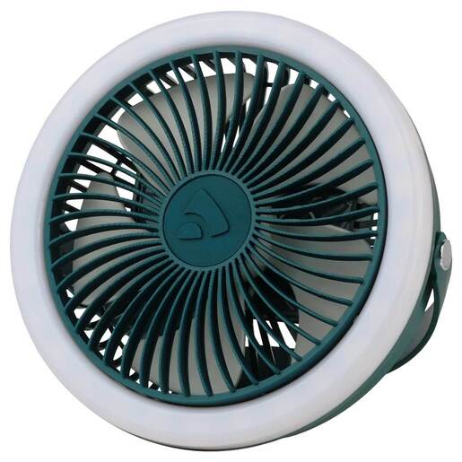 Coghlan's Camp Fan with Light - Cool down and light up your campsite with this versatile 3-speed camping fan. Whether you're relaxing in your tent or enjoying a meal outdoors, its adjustable stand and built-in hook offer flexible setup options. Powered by a USB-C rechargeable battery, this fan is highly portable. Keep the breeze and light going for up to 3 hours, making your outdoor time more comfortable and enjoyable. Features USB-C Rechargeable 3 speed modes with a brushless motor Two brightness settings of LED light ring 3+ hour runtime when using both the light and the fan together Adjustable kickstand with integrated hanging hook