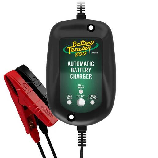 Battery Tender Weather Resistant 800mA, 12V Battery Charger -The rugged Battery Tender 12V, 800mA weather resistant battery charger and maintainer has all the features of our best selling Battery Tender Junior, in a mountable water resistant package. This 800 milliamp battery charger is also shock and vibration resistant, perfect for all types of ATVs, personal watercraft, motorcycles, boats, or other recreational vehicles that may be exposed to the elements. While compact in size, it's tough enough to keep your ride ready for its next adventure. Charges & Maintains ATVs, Generators, PWCs, UTVs Battery Compatibility Lead Acid (SLA), Lithium Included in the Box: 800mA battery charger, ring terminal and alligator clip combo cable, Weather Resistant and durablw 3 Year Manufacture Warranty