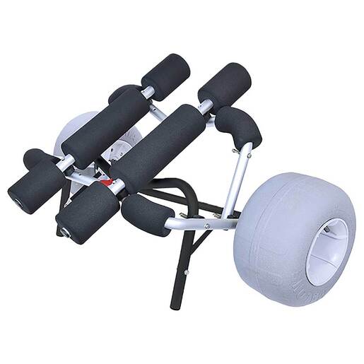 Malone WideTrak SB Large Kayak/Canoe Cart - Balloon Beach Wheels - Most canoes, sit-on-top, and fishing kayaks have wide hulls for stability and these boats require a cart with additional width and higher load capacity. This cart provides transport for nearly all canoes and large fishing kayaks including those with non-traditional (tri-hull & pontoon) hull configurations. The WideTrak offers the perfect solution for confident transport on soft terrain and in deep sand conditions. Features 12 in x 7 in sand wheels, double 2pc load straps, low-pressure air pump, and a Limited Lifetime Warranty. Features 12 in balloon wheels for beach and soft terrain portage 24 in adjustable padded bunks with mounting hardware Folding frame Corrosion resistant stainless-steel fittings Two 11ft 2pc cam buckle load straps Twin kickstands for stability when loading and unloading Limited Lifetime Warranty