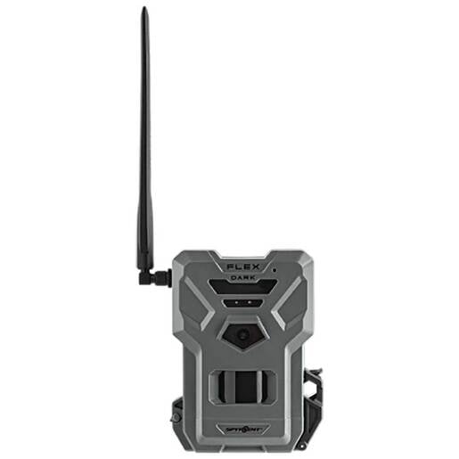 Spypoint FLEX-DARK Trail Camera -The SPYPOINT FLEX-DARK is a cellular trail camera that acts as your undercover eyes and ears in the field. Keep your targets oblivious, never worry about leaving a scent or disturbing your hunting area, and scout anytime with photos and videos sent directly to the SPYPOINT app. With a winning combination of fully customizable settings and advanced features, the FLEX-DARK unlocks the advantage you've been waiting for. Features LET SPYPOINT SCOUT FOR YOU: receive photos and videos with sound, and request full-HD photo and video files, via the free SPYPOINT app—keeping you updated on game activity from anywhere. FREE TRANSMISSION PLAN: get 100 free photos a month per camera, with plan upgrades that are among the most affordable in the market. Plus, enjoy extra perks when you join the SPYPOINT Insiders Club. CROSS-CARRIER COVERAGE: Dual-SIM technology automatically connects you to all major carriers and the strongest signal in the area, so you can count on reliable coverage. EASY SET UP AND REMOTE MANAGEMENT: leave your hunting area undisturbed by activating, managing, and updating your camera remotely via over-the-air updates with the SPYPOINT app. Plus, locate your camera anytime using the GPS locator on the in-app map. BUILT TOUGH: a reinforced shell in ghost grey for better concealment, a flexible antenna with no-slip brass hardware that won’t snap or move out of position, and an improved latch to make sure the FLEX-DARK never stops working, even in harsh conditions, season after season. ENDLESS OPTIONS: fine-tune your settings with customizable features like multishot mode, Time-Lapse and Time-Lapse+, scheduling, in-app maps, and more. Download your HD photos and videos easily from the app or the microSD card, ensuring everything stays backed up. DON’T SPOOK GAME AT NIGHT: customize flash settings with low glow and no glow LEDs that make no noticeable light or sound, truly keeping game in the dark. FILTER FOR WHAT MATTERS TO YOU MOST: use free BUCK TRACKER AI to automatically filter photos and videos. TWO-YEAR WARRANTY: enjoy peace of mind knowing that SPYPOINT’s “Know You’re Covered” guarantee protects your investment.