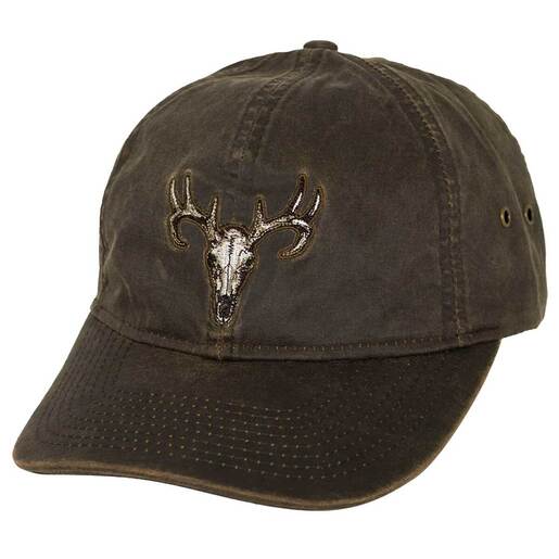 Paramount Outdoors Men's Deer Skull Hunting Dad Hat - The Deer Skull wax cloth cap is on the Trail Cap Dad Cap style. Coupled with a wax cloth fabric, this deer hunting hat features a unstructured front with detail buck skull embroidery. Additionally, featured is the COMFORT SNAP elastic closure which couples the stretch fit of a custom cap with the adjustability of a snapback. Lastly, this deer skull wax cloth hunting hat features American Fit sizing which fits men's head sizes MD - XX. Rail 6-Panel Dad Cap features a unstructured design Wax Cloth Fabric that is durable and water resistant Comoft Snap rear closure couples elastic stretch with the adjustability of a snapback American Fit sizing fits men's head sizes MD - 2X One Size Fits Most Style: PAO1082