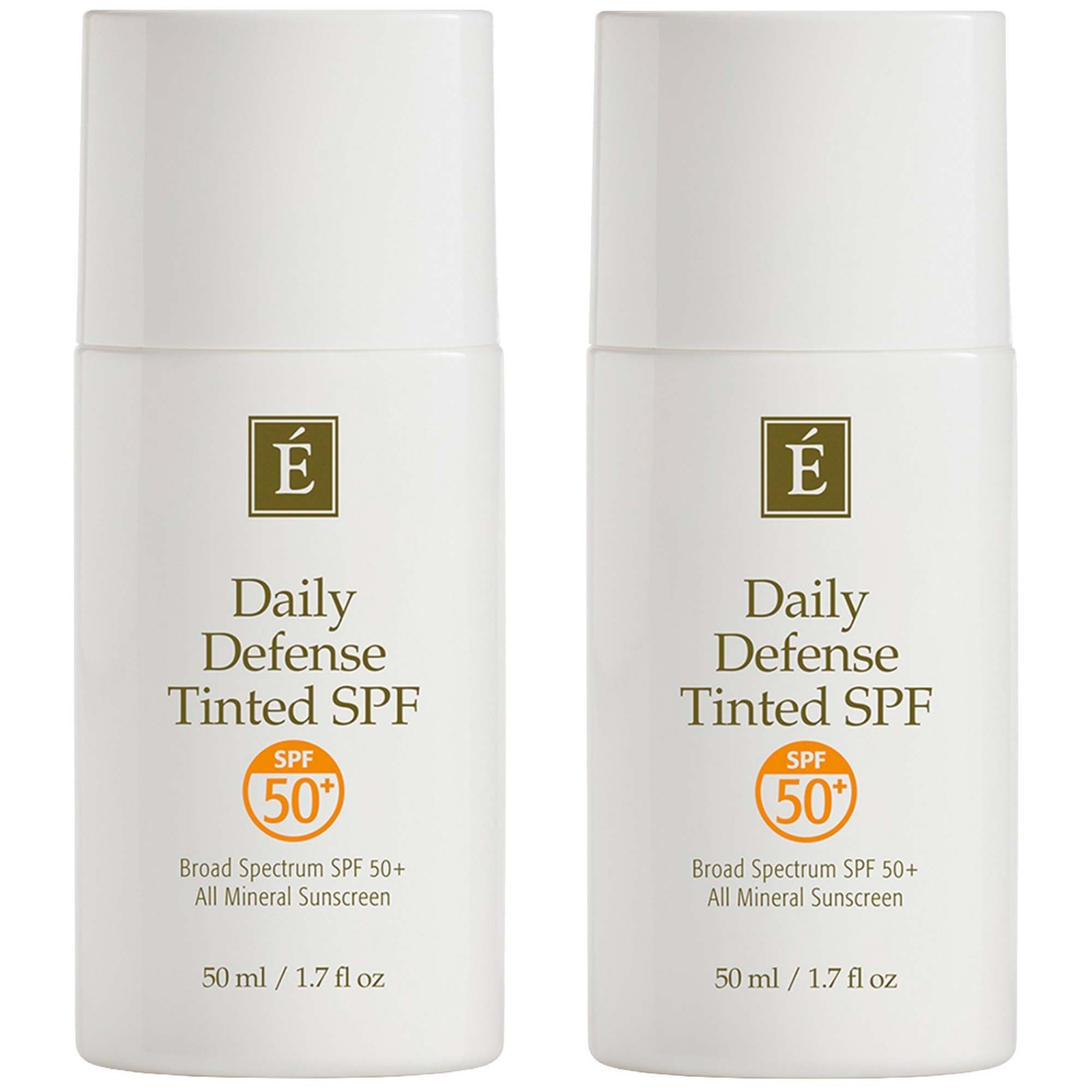 Achieve a natural finish with this lightweight, tinted SPF 50+ sunscreen. This all-mineral formula is non-comedogenic and enriched with antioxidants for hydration while offering broad-spectrum and blue light protection. | Eminence Organic Skin Care Daily Defense SPF Duo | Dermstore