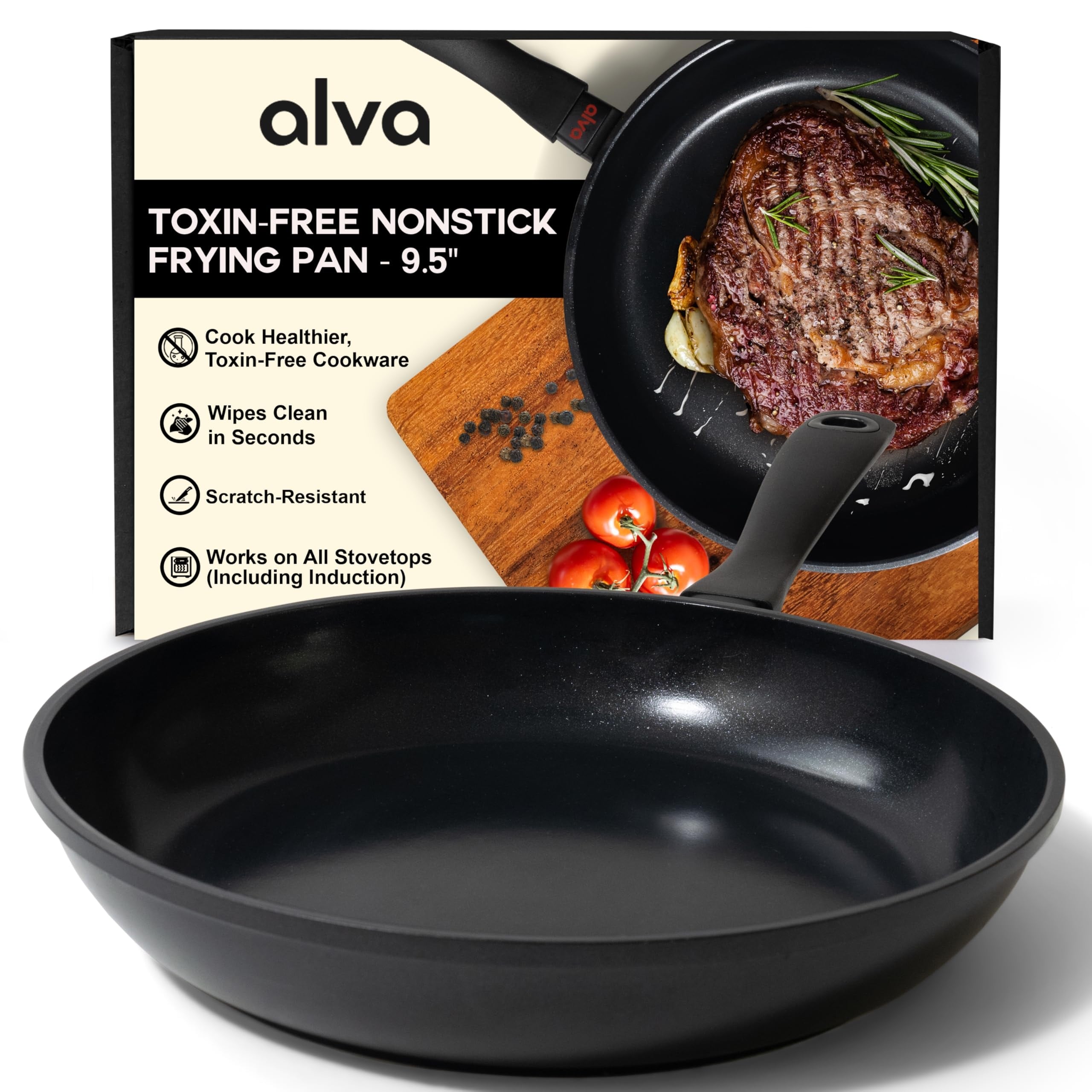 ERGONOMIC DESIGN FOR COMFORT: The Alva Energy Nonstick Frying Pan features a stay-cool handle, providing a secure grip for safe and easy maneuvering. Enhance your cooking experience with this user-friendly nonstick pan.