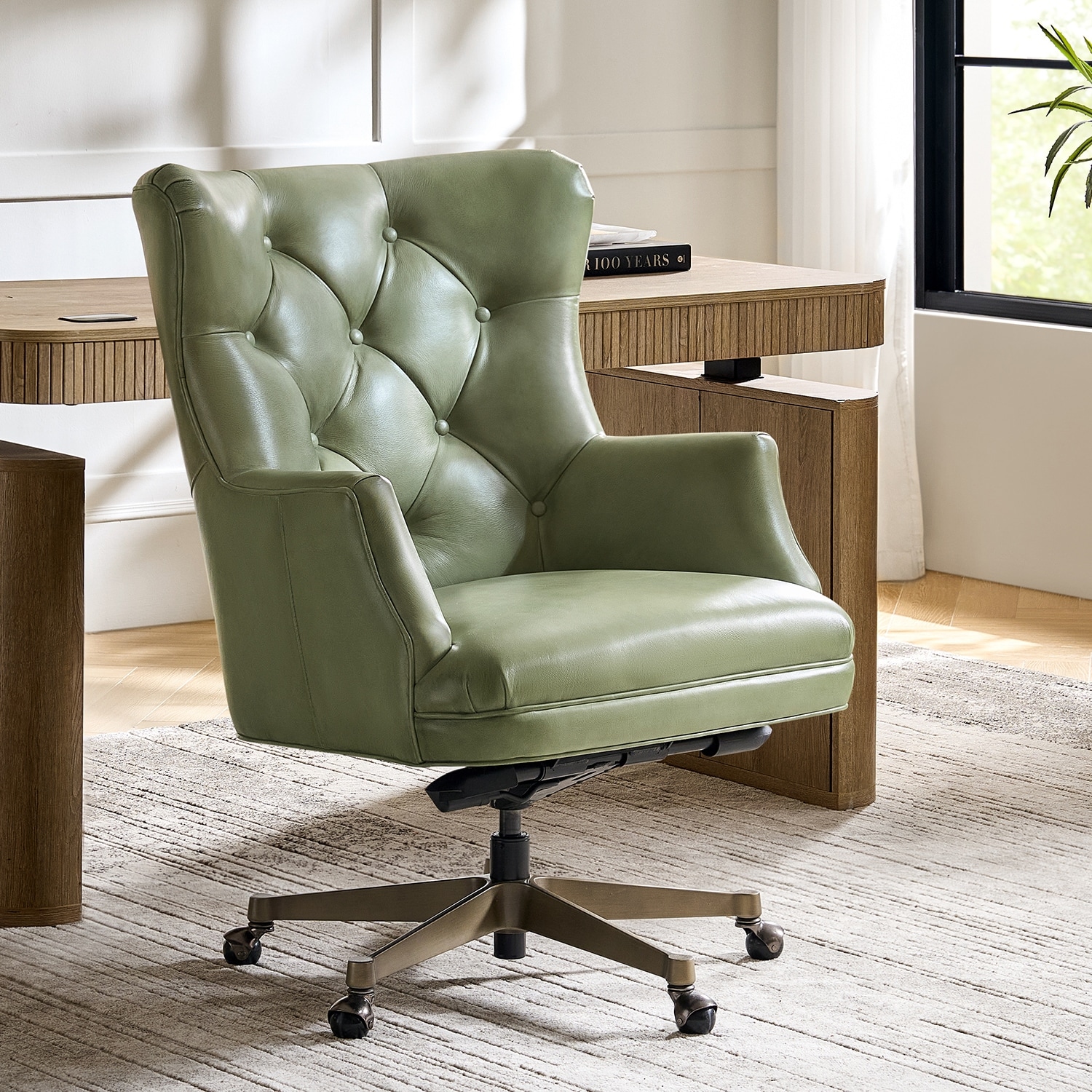 Elevate your workspace with this transitional office chair that blends classic charm and modern function. The wingback backrest features a tufted button design for a touch of American elegance, while its comfortable padding ensures lasting comfort.