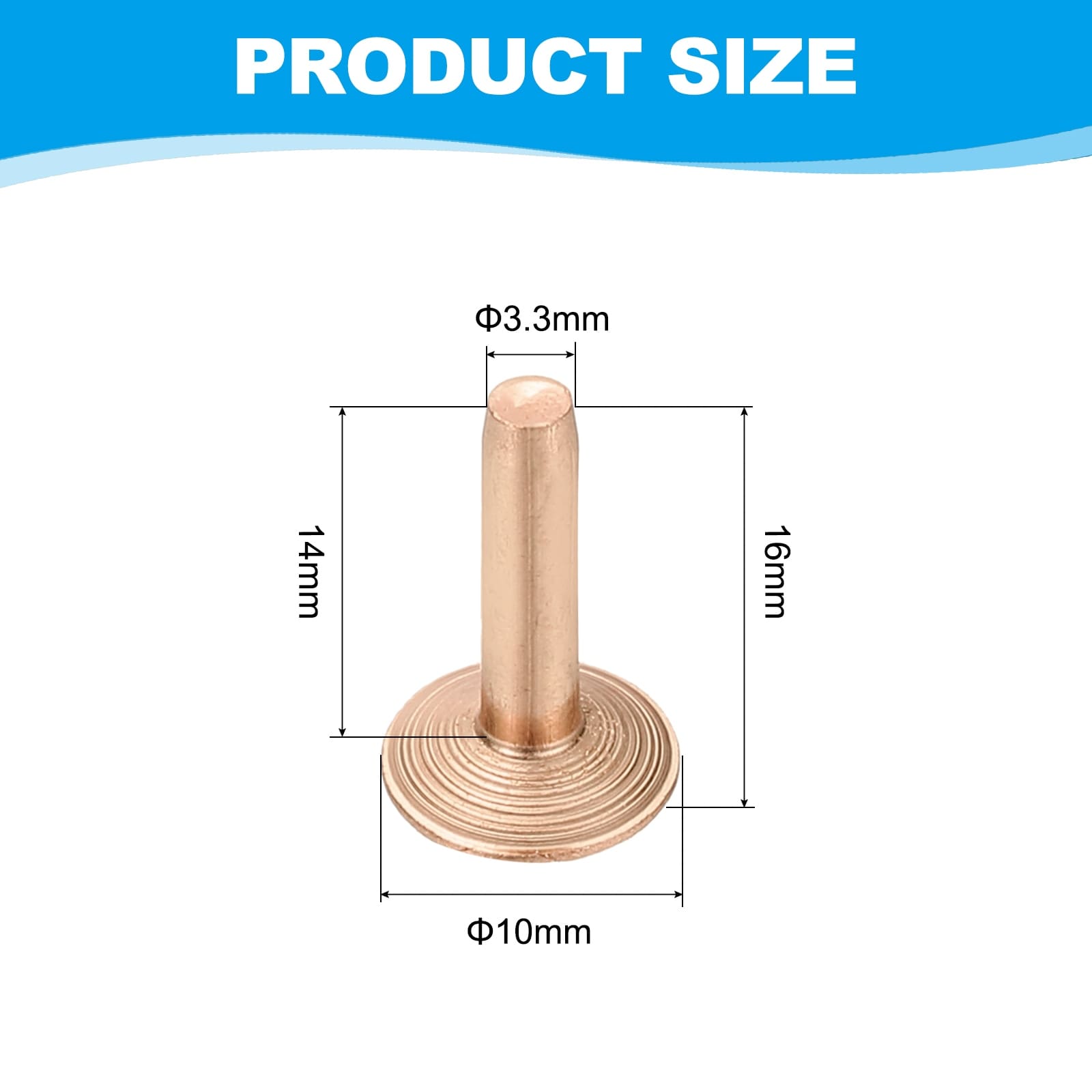6x2.3x10mm Studs for Clothing, 24 Sets Spikes Leather Rivets, Copper