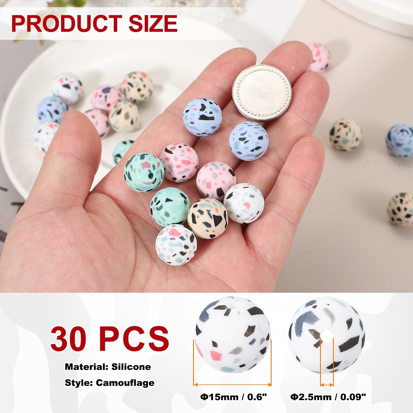 Silicone Beads, Round Leopard Beads for Beaded Keychain Making DIY Crafts Bracelets Jewelry Making Supplies