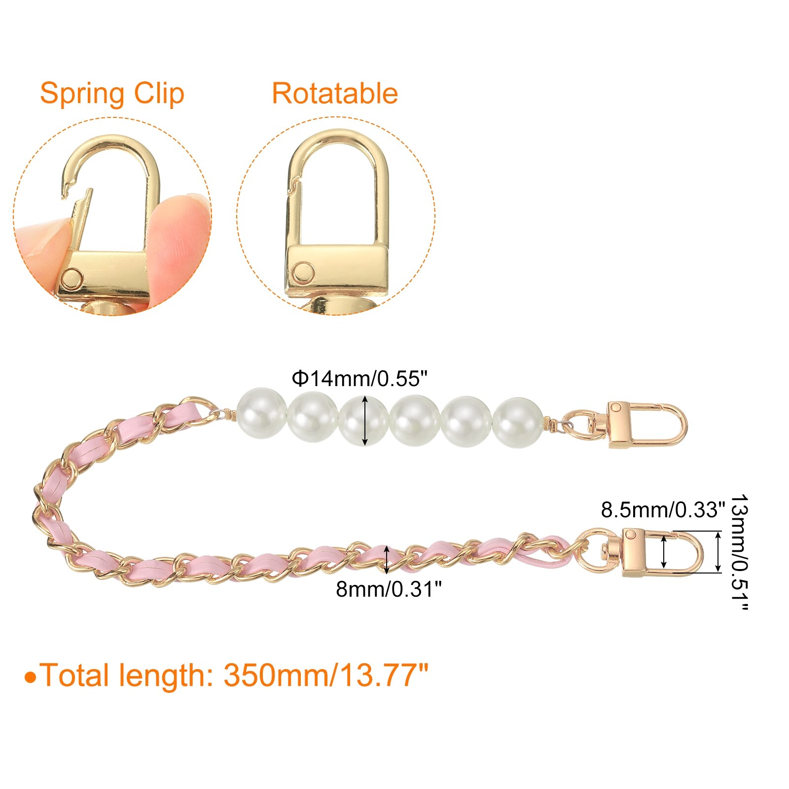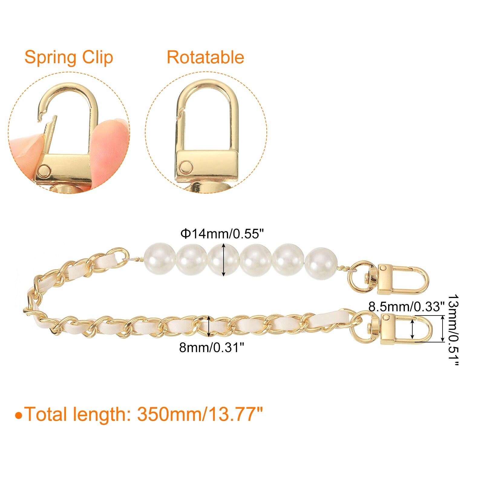Leather Wristlet Strap, Imitation Pearl Short Wrist Purse - 360mm
