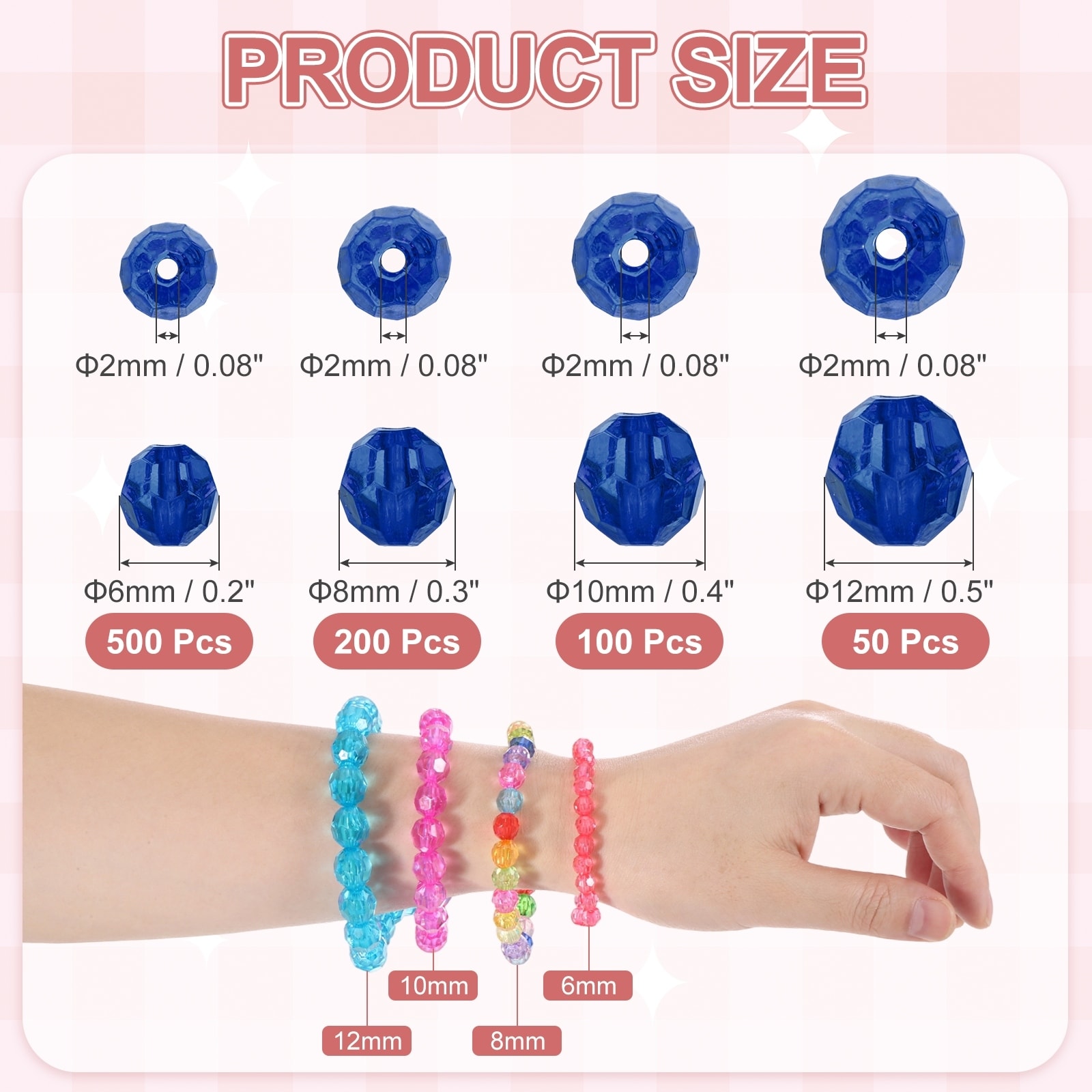 Acrylic Round Faceted Bicone Beads Loose Crystal Spacer Bead for Bracelets Necklace Earring Jewelry Bags Decoration