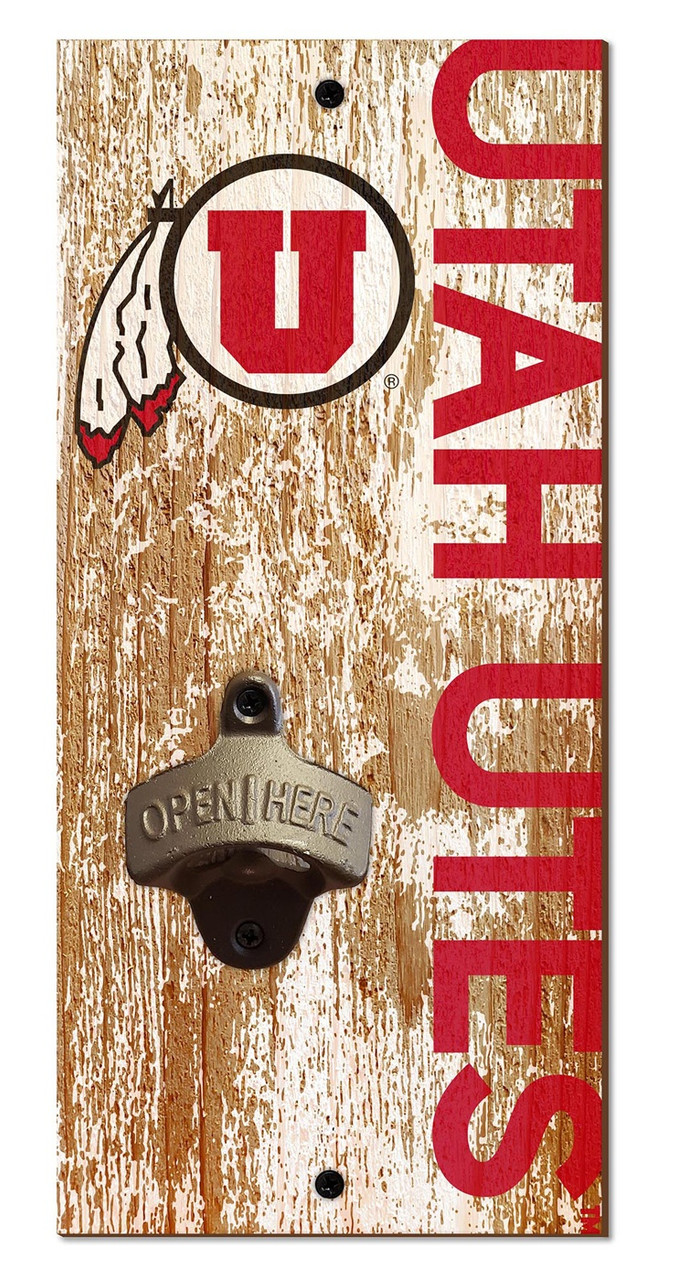Utah Utes 6" x 12" Distressed Bottle Opener