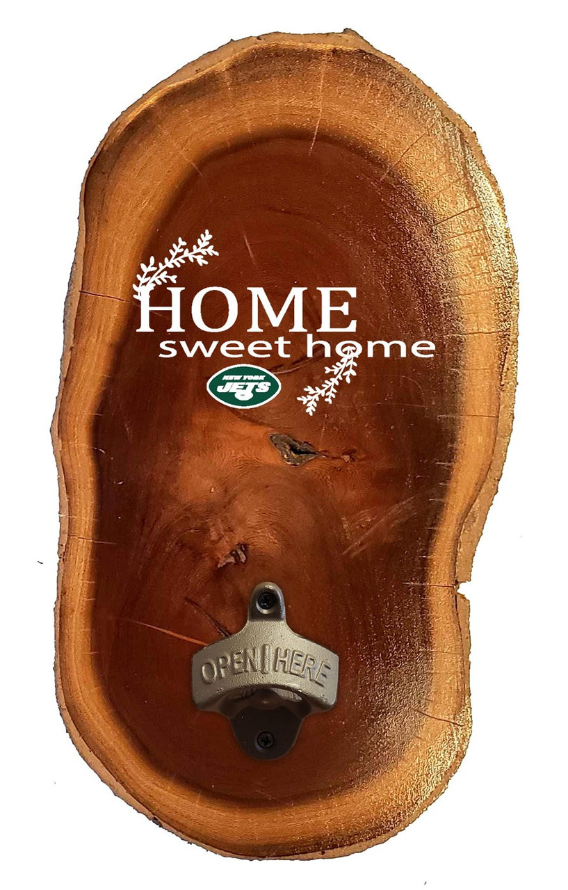 New York Jets Home Sweet Home Wood Slab Bottle Opener