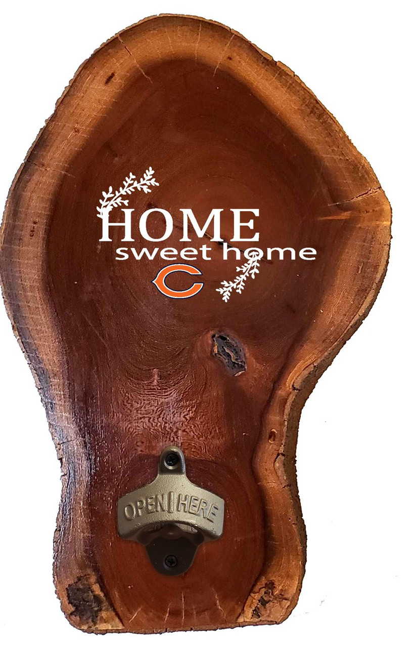 Chicago Bears Home Sweet Home Wood Slab Bottle Opener