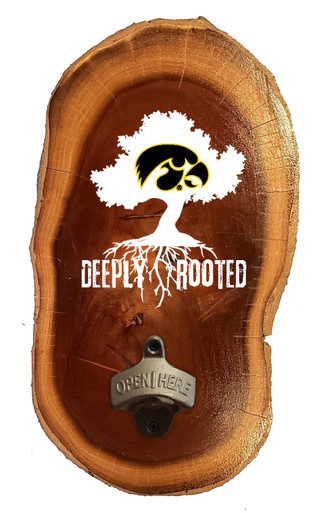 Iowa Hawkeyes Deeply Rooted Wood Slab Bottle Opener