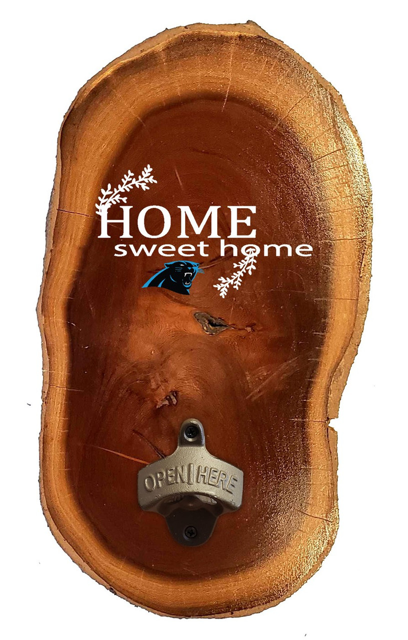 Carolina Panthers Home Sweet Home Wood Slab Bottle Opener