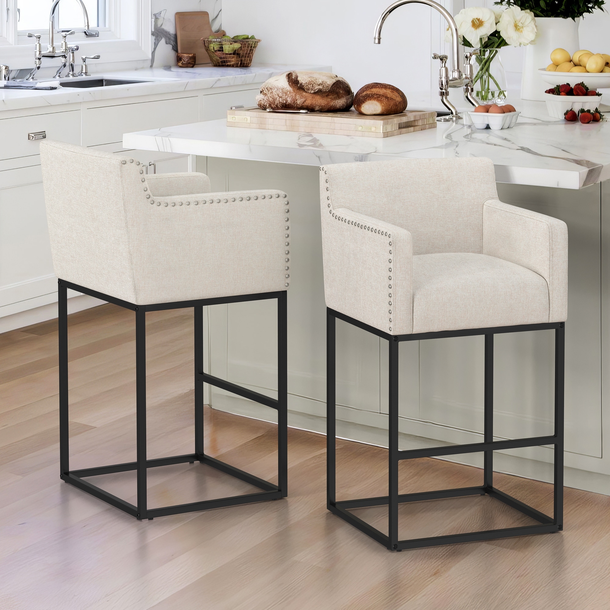 Roomfitters Modern Upholstered Bar Stools, Set of 2, Comfortable Padded Seat with Wooden Frame for Kitchen Counter