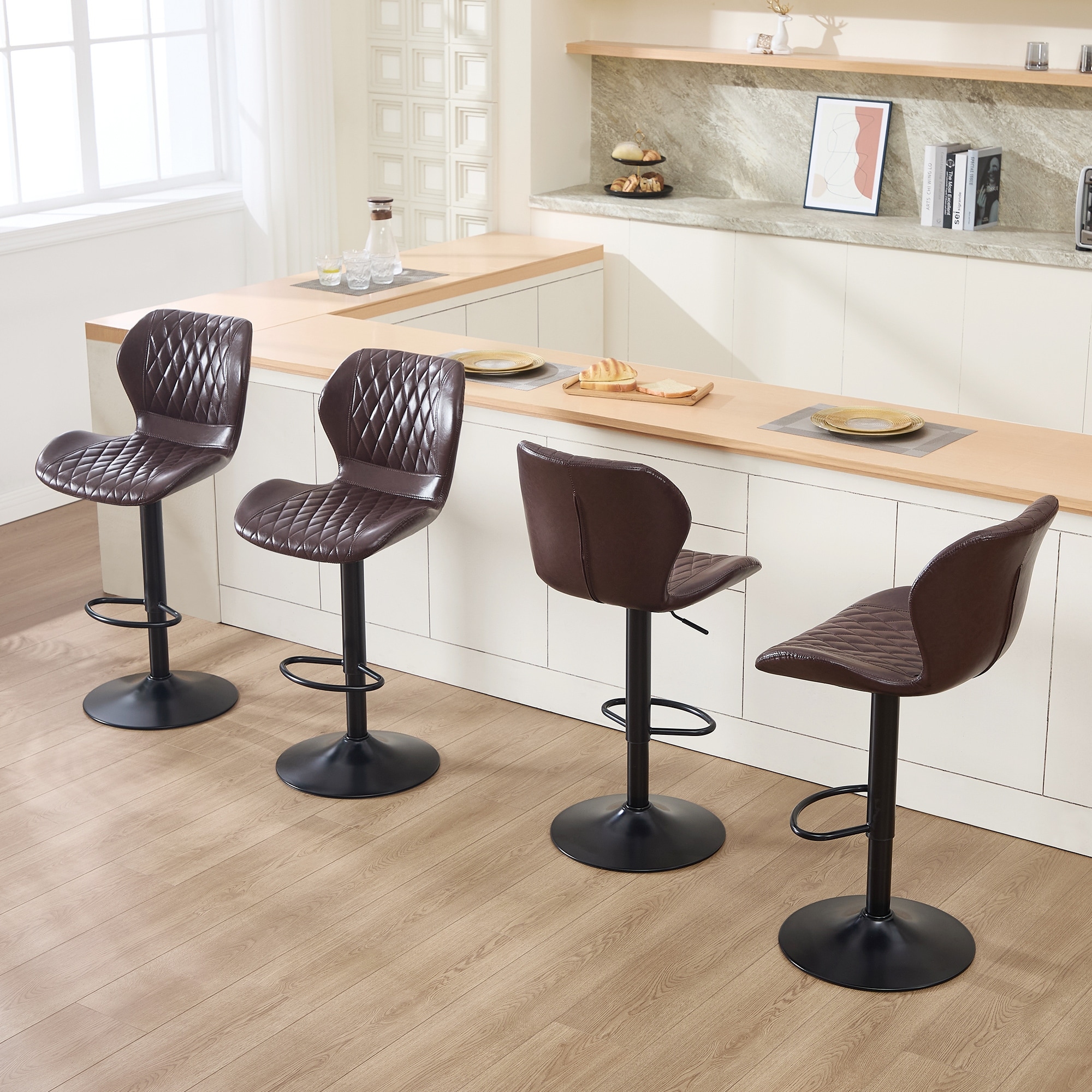 Modern Swivel Barstools, Tufted Back Upholstered Dining Chair, Leather High Bar Chair Adjustable Height, Set of 2