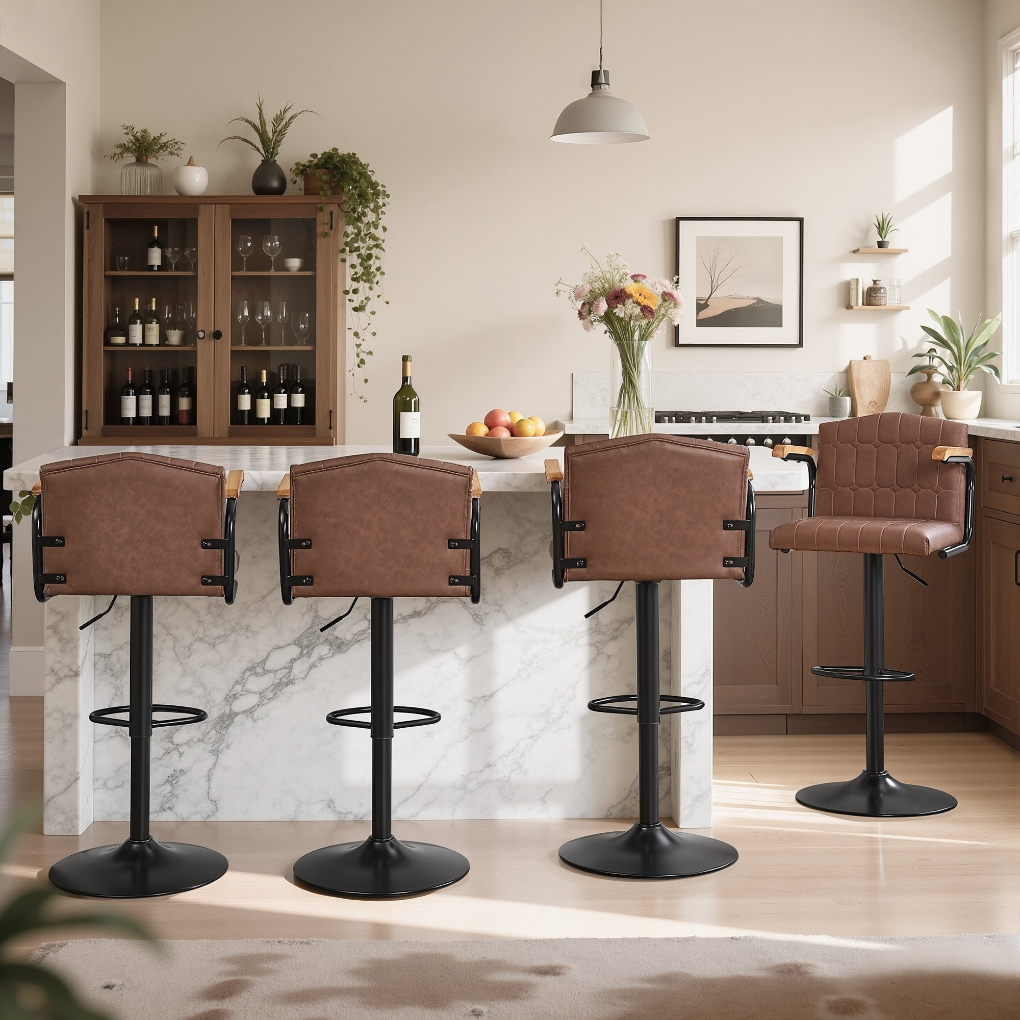 2/4 Pack Flocked Bar Stools Swivel 35.4"-43.3" Adjustable Height Arms Counter Bar Height Kitchen Island Set