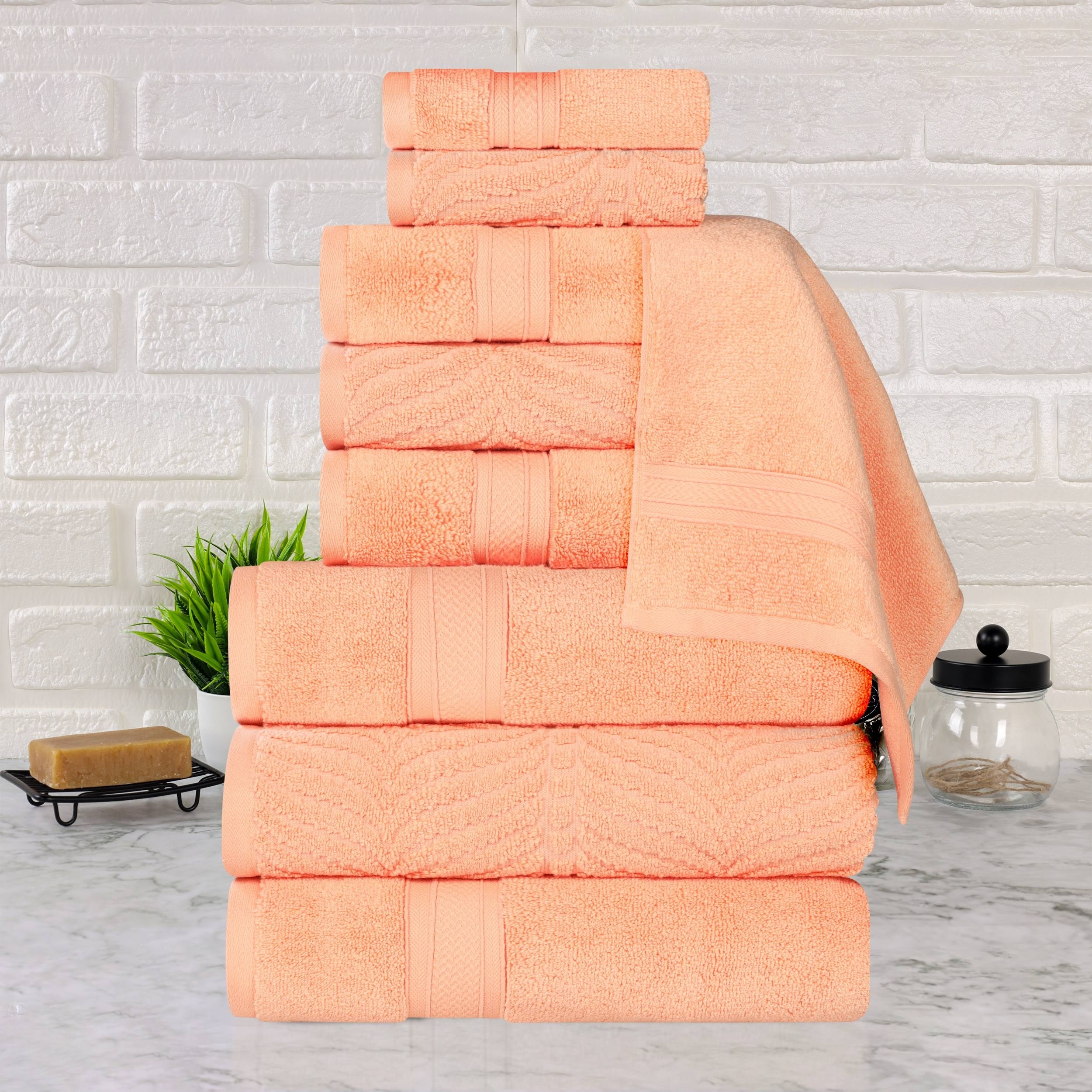 Superior Chevron Zero Twist Solid and Jacquard Cotton 9 Piece Towel Set