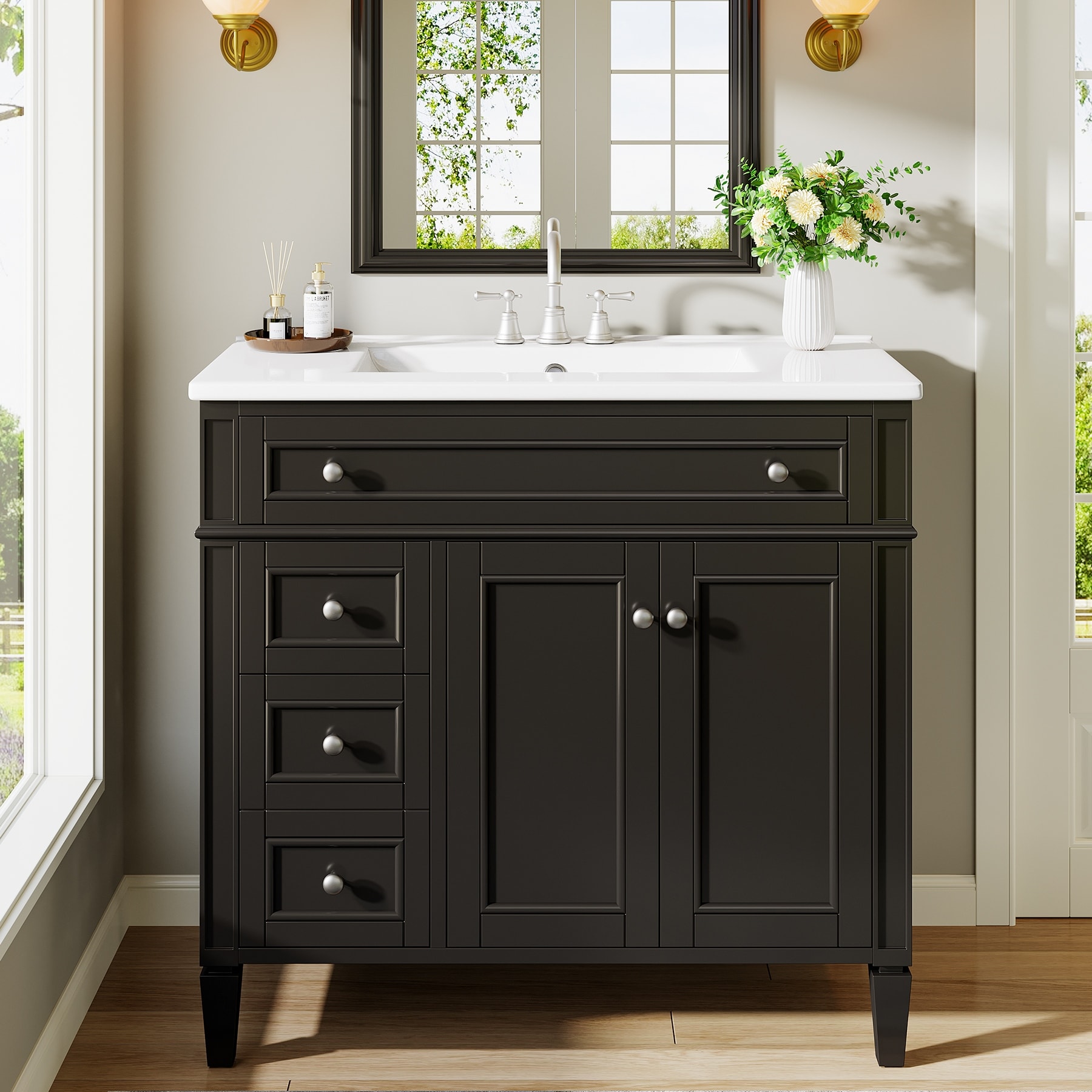 36" Bathroom Vanity with Sink, Modern Bathroom Sink Cabinet with 4 Drawers & 2 Doors, Solid Wood Frame