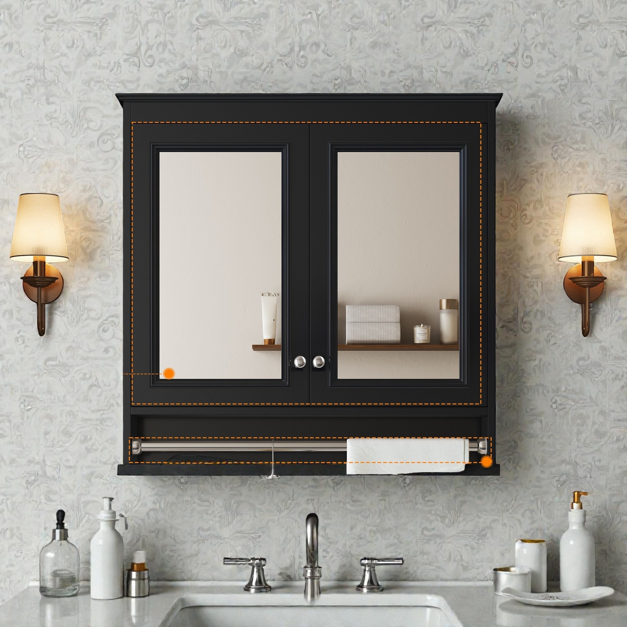 24" x 27" Wall-Mounted Medicine Cabinet with Mirror and Over-the-Toilet Space Saver Storage