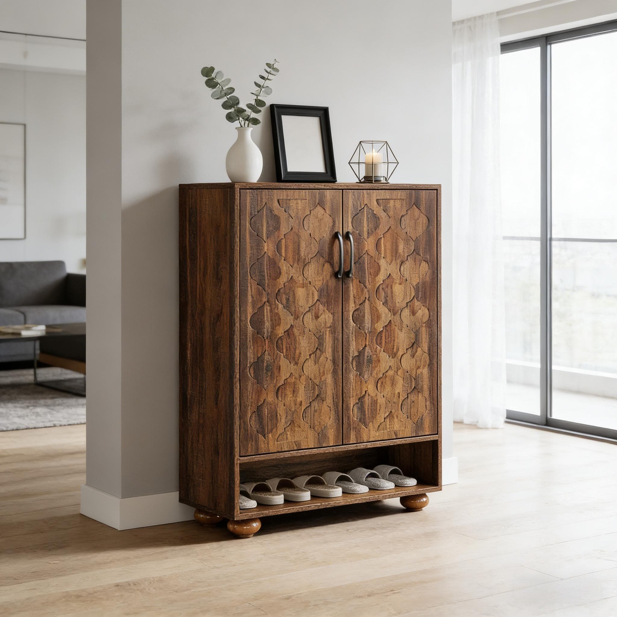 Free Standing Wooden Corner Storage Cabinet with Doors and Shelves