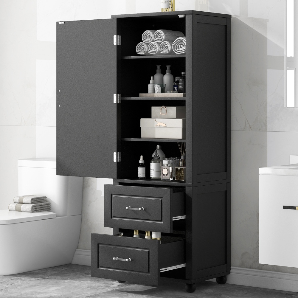 61.4 in. Freestanding Tall Bathroom Storage Cabinet with Two Drawers and Adjustable Shelf - 23"W x 15.9"D x 61.4"H