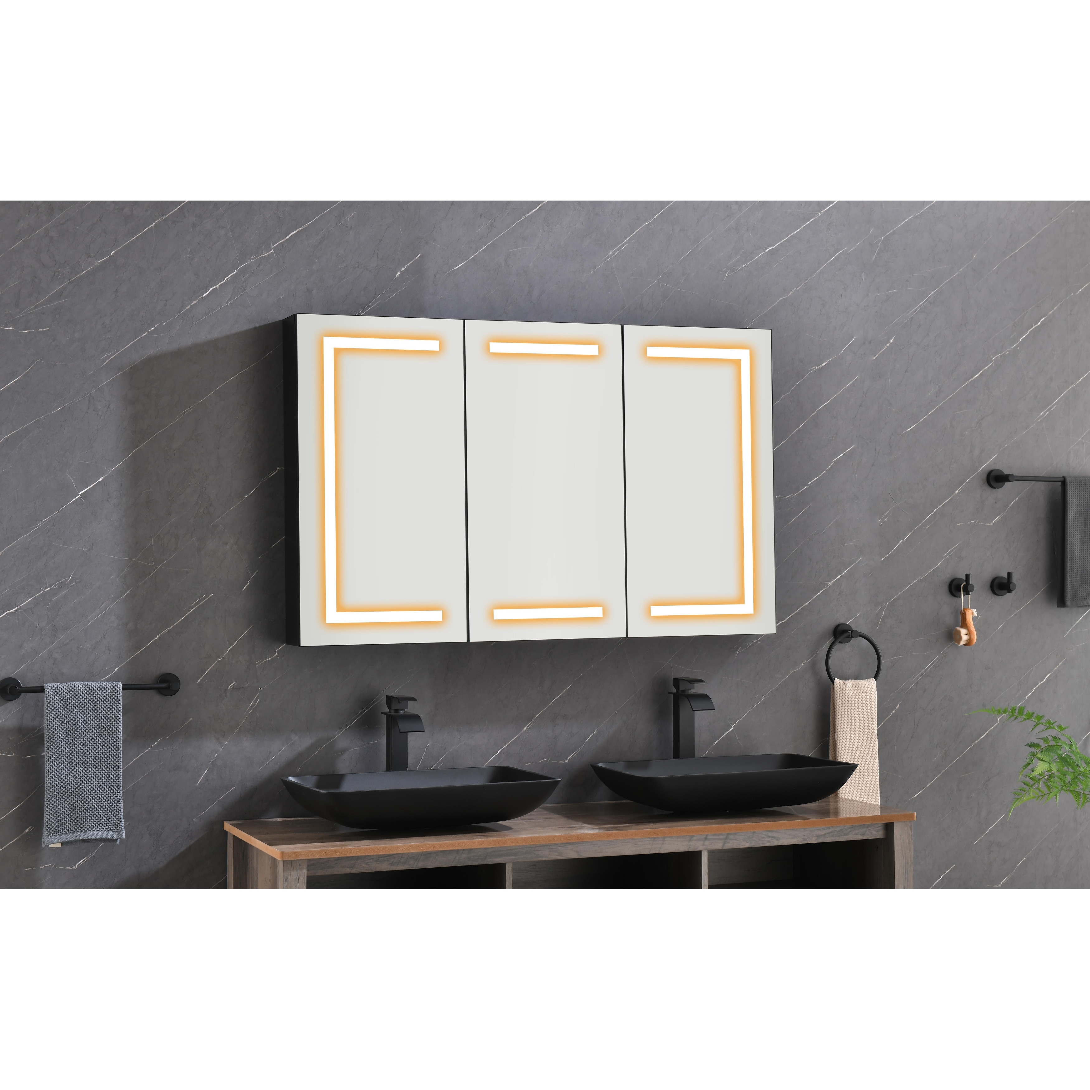 Bathroom Storage Cabinets, LED Mirror Cabinet, Vanity Cabinet, Medicine Cabinet with 3 Door Cupboard and Open Shelf